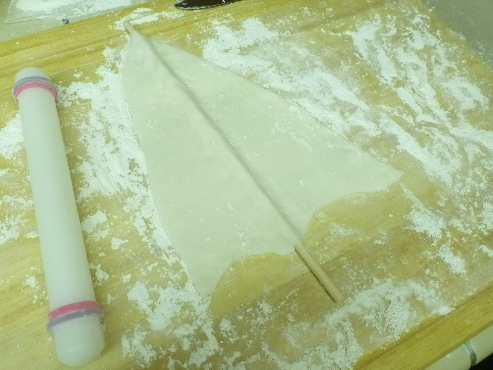 We attempted to make a sail using the fondant too (I would have preferred gum paste but didn't want to make a run to the store). Unfortunately when I attempted to stand the sail upright, it ripped in half. Always have a back-up! I was sooooooo glad we made a backup sail out of parchment paper!